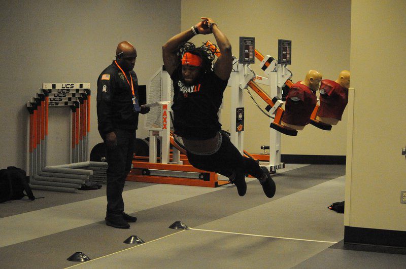 But osu running back chris carson made his presence felt on thursday with a bench press showing that stacked up favorably among the other participants. Mcdougald knee carson hip and fluker calf each were forced out of last. Day two of the combine features prospects running around in skin tight spandex and showing quickly they can reach top speed over a distance.