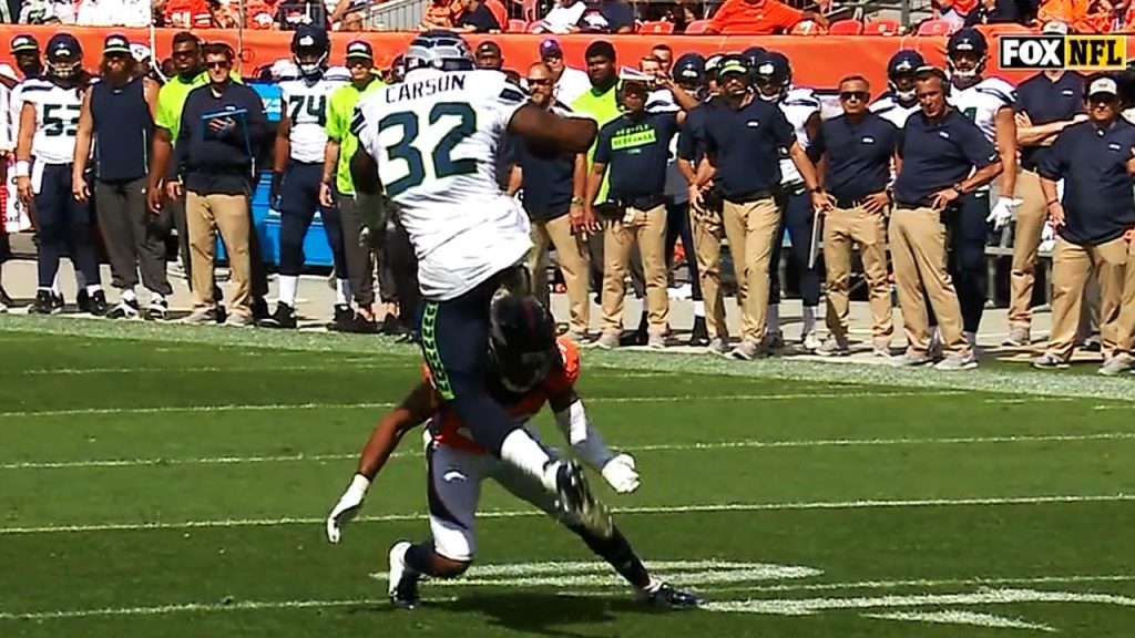 Even seattle seahawks running back chris carsons mother cant stop the dominant runner from doing what he does best hurdling dopeschris carsons mother cant stop the dominant runner from doing. Late in the first quarter on sunday seattle running back chris carson hurdled roby en route to a 24 yard run.