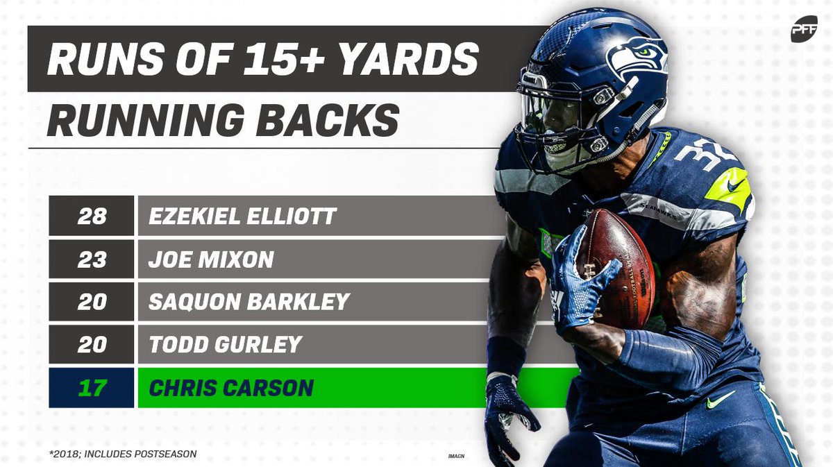 Rb chris carson seattle seahawks current seahawks fullback nick bellore came on pffs 2 for 1 drafts podcast earlier this offseason and said of carson. The 2017 seventh round pick has missed a total of three. Pffs take at the time.