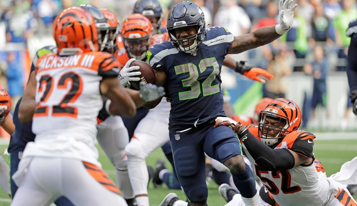 Running back chris carson carried the ball for two yards at the 303 mark and after play he was down and in pain. However the fourth year seattle seahawks running back has found his footing via the passing. Through two games hes rushed for just 93 yards on 23 carries and has had only one carry of 10 yards.